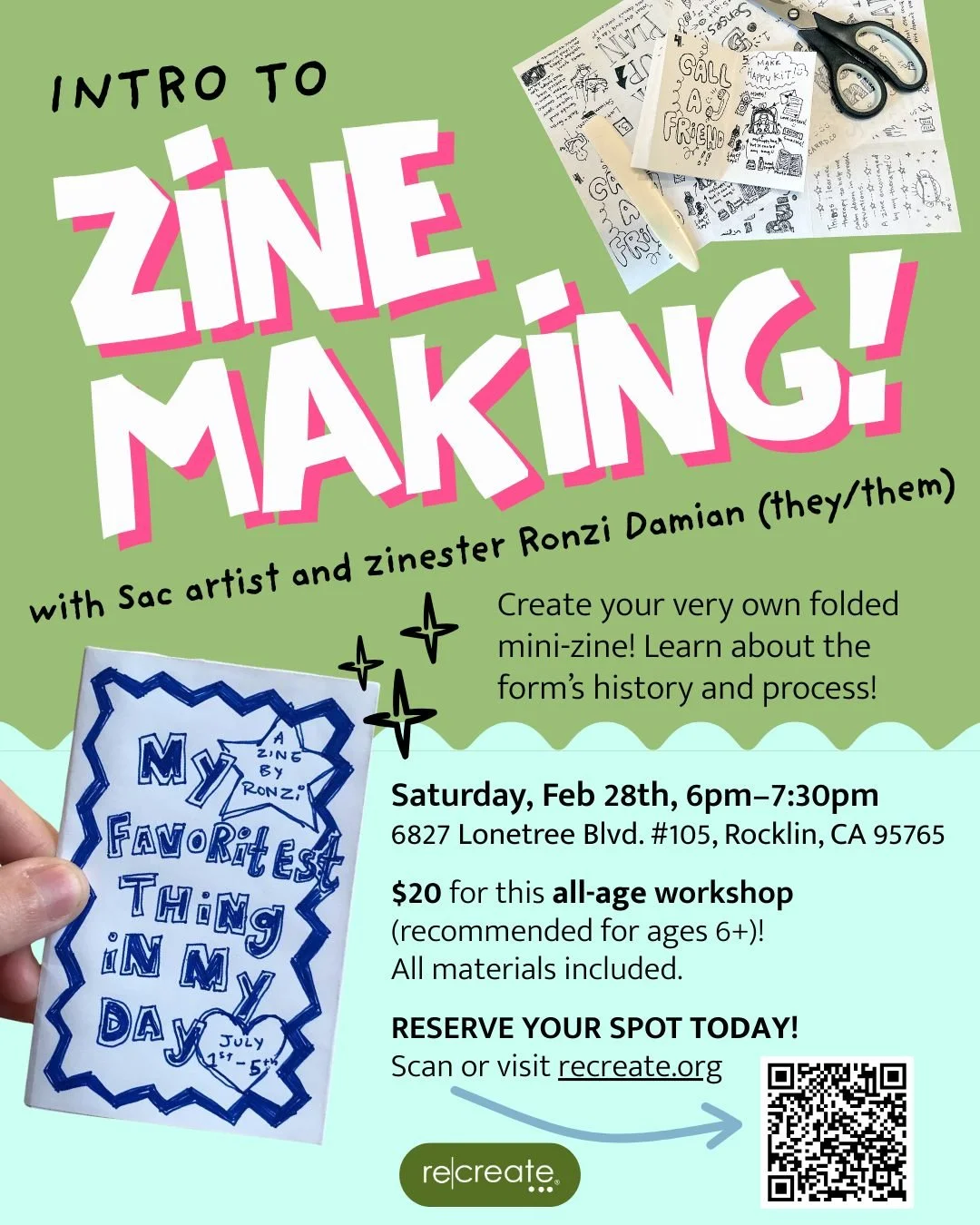 ReCreate collects perfectly good, incredibly cool—but no longer needed—materials from local businesses and sells them to artists, crafters, sewers, knitters, costume-makers, artists, and anyone with a project. Our goods are so inspiring you may never walk into another commercial art supply store again—especially since our prices are so very low!