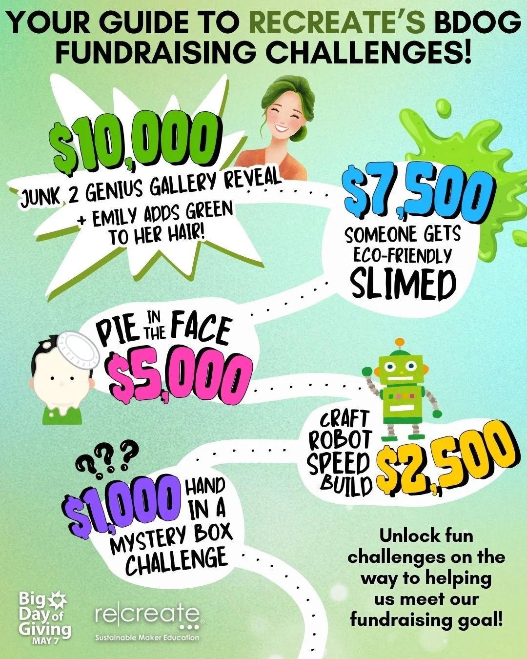 Look for our colorful, can’t-miss-it ReCreate van or GeniusMobile at fairs, festivals, and special events held by local schools, libraries, parks, and more. We set up a table, provide materials (diverted, of course) and tools for a free, on-the-spot art-making experience. Armed with glue guns, good humor, and boundless creativity, our fun facilitators can bring out the artistic genius in anyone. Be sure to stop by!