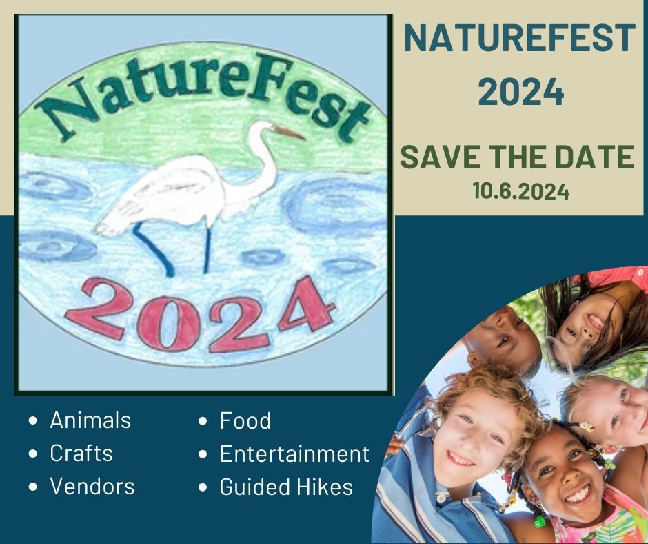 Join us on the first Sunday in October - October 6, 2024, from 10 AM to 2 PM for NatureFest! Enjoy a day filled with outdoor fun, educational activities, and family-friendly entertainment. Explore nature exhibits, participate in interactive workshops, meet live animal ambassadors, and much more. It's the perfect event for nature lovers of all ages. Don't miss out on this exciting celebration of the great outdoors!