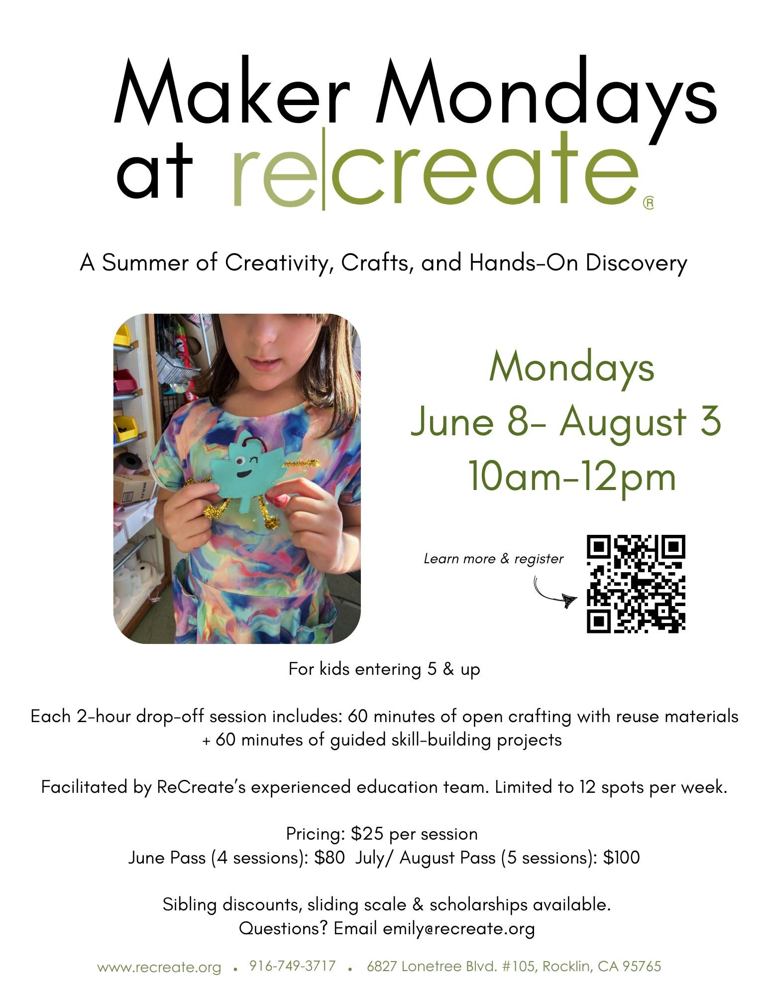A weekly creative program where kids build skills in crafting, making, and creative reuse.