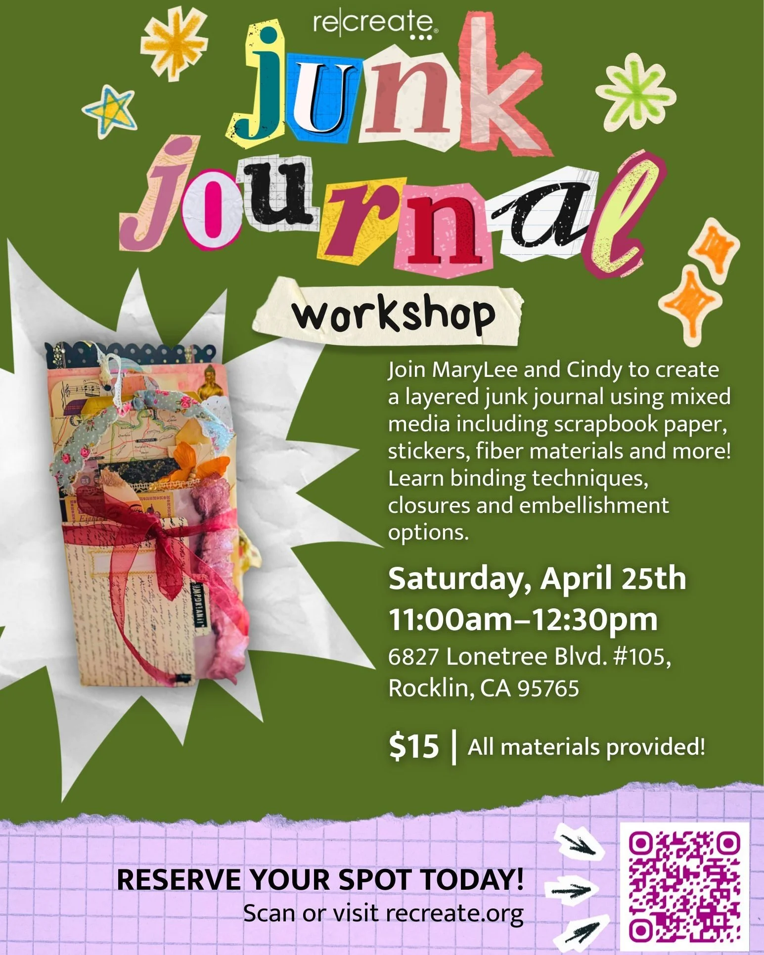 The Art and Maker Studio is ReCreate’s airy, spacious home base. We host birthday parties, field trips, kids’ workshops, as well as classes for adults. We also offer studio time by reservation or drop-in for artists and crafters of all ages. We supply the super cool diverted materials, you supply the creativity!